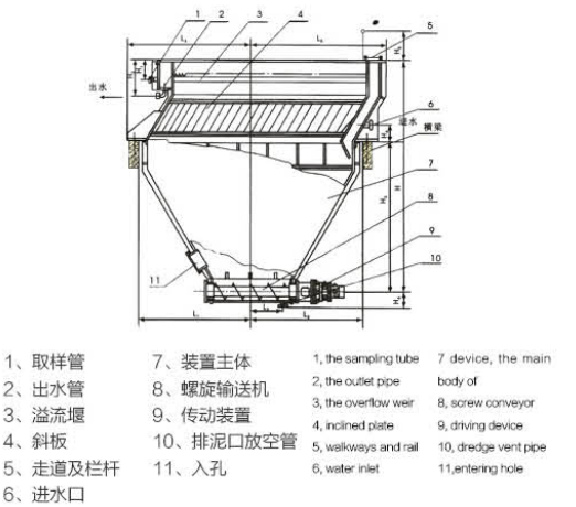 ?產品概述:斜板沉淀器屬沉淀分離裝置的一種,采用了分散顆粒的淺 層沉淀理論,并吸收了國內外多層、多格、斜板沉淀先進 技術。廣泛應用于冶金、市政工程、機械、化工、電力等行 業的污水處理工程。